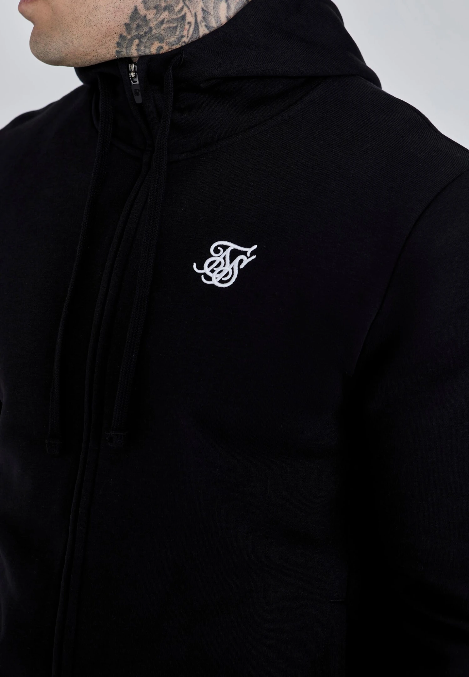 SikSilk Black Essential Zip Through Funnel Hoodie