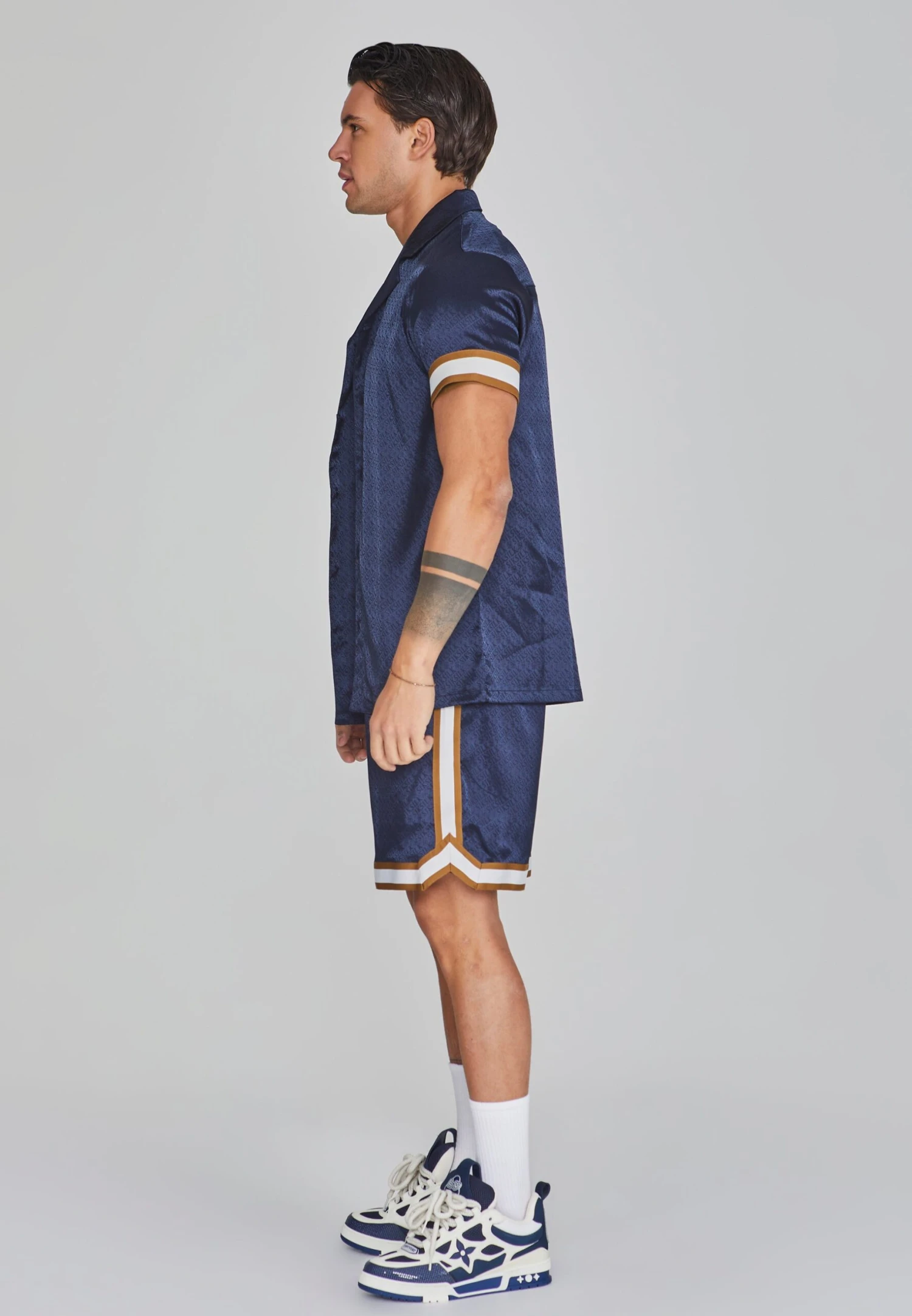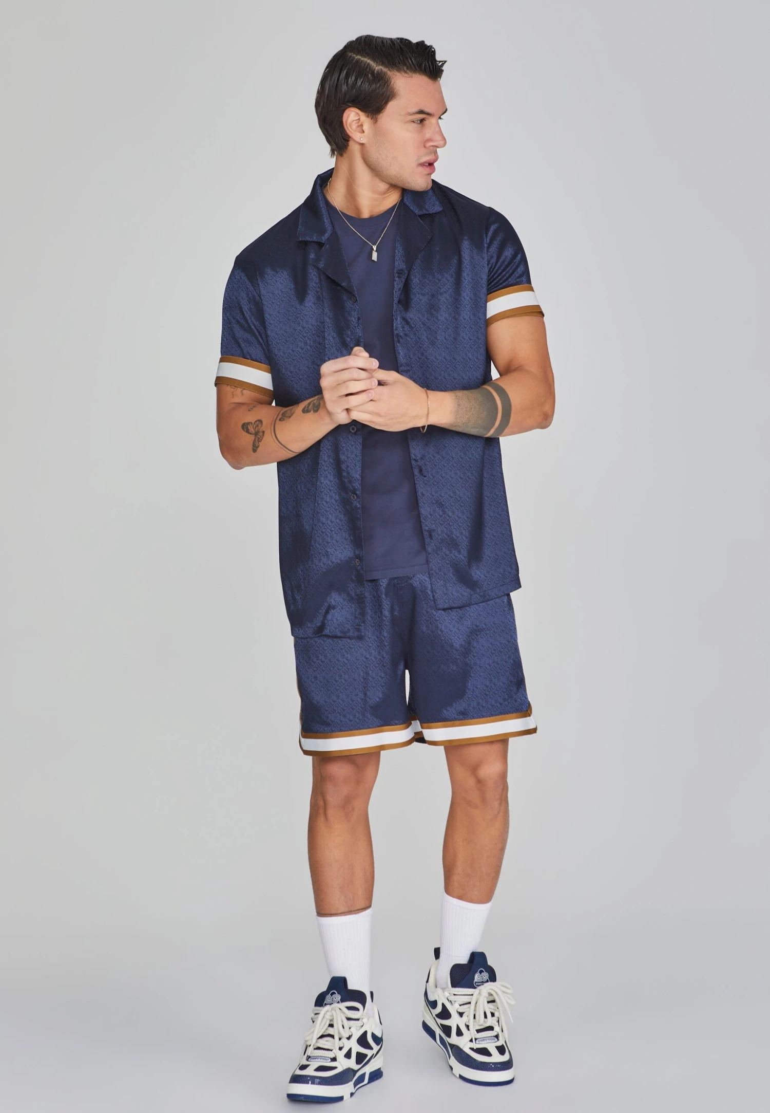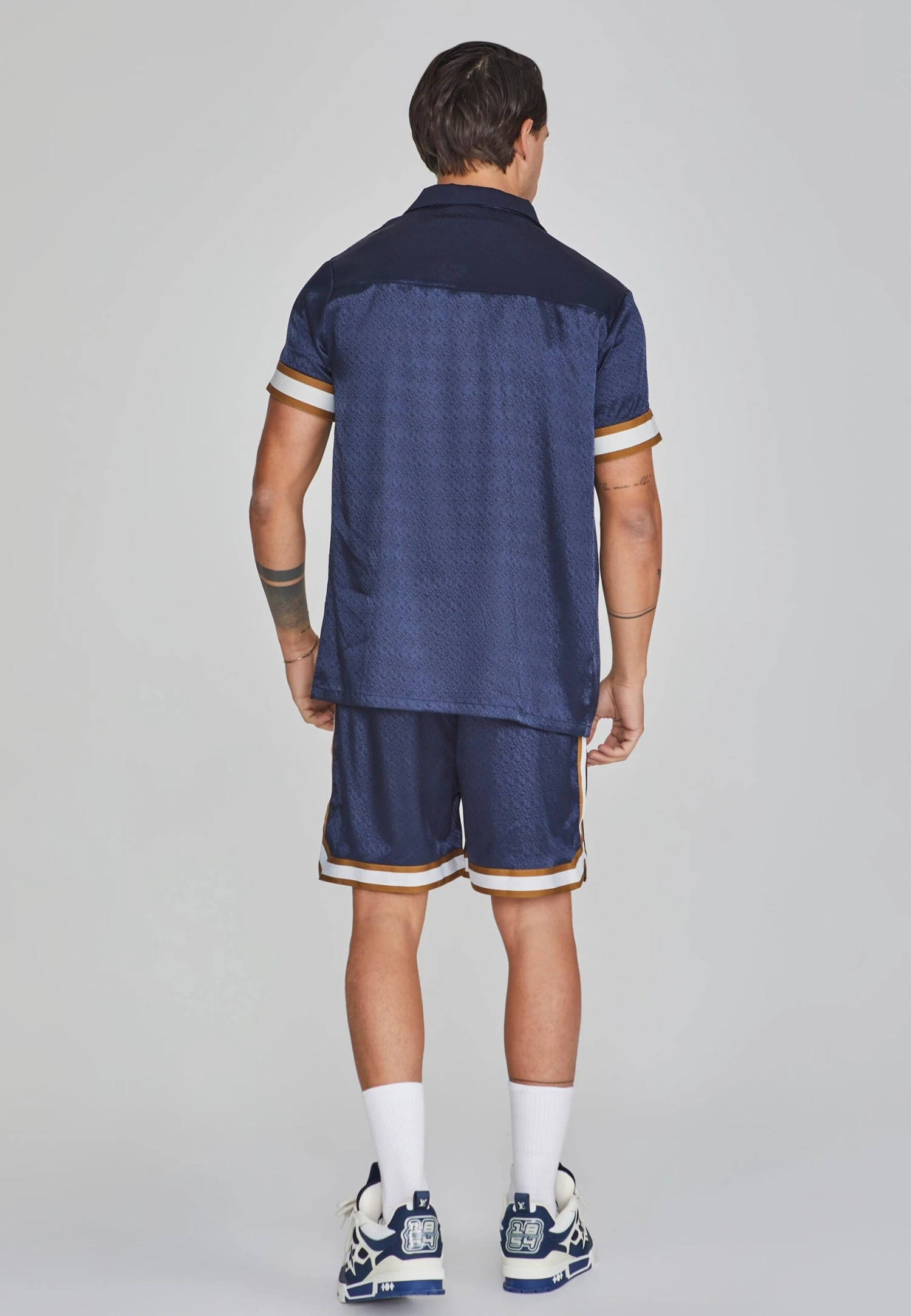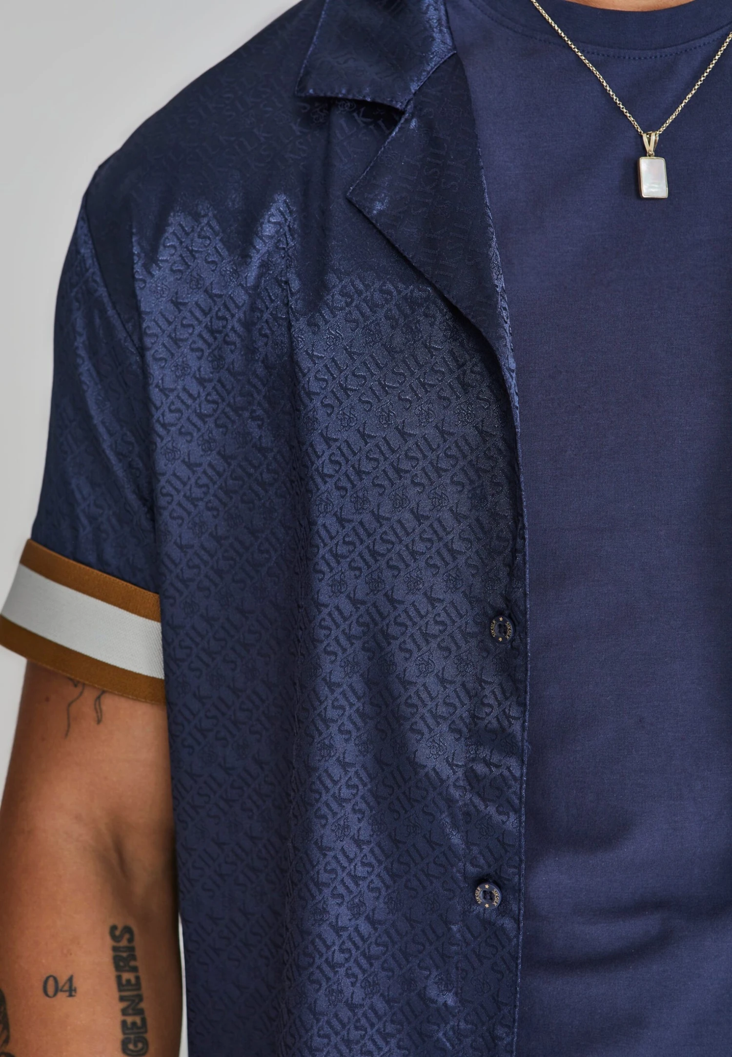 - Short sleeves with tape detail