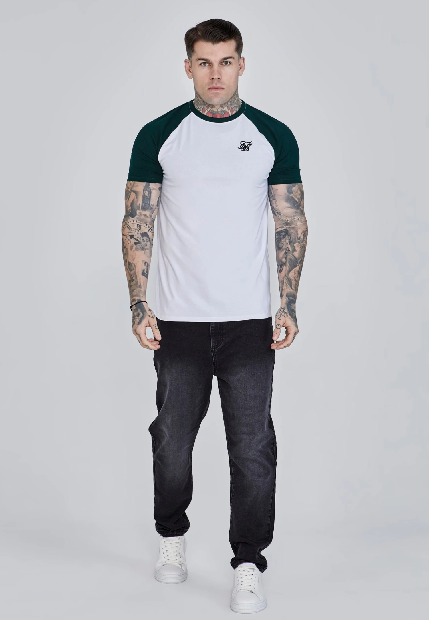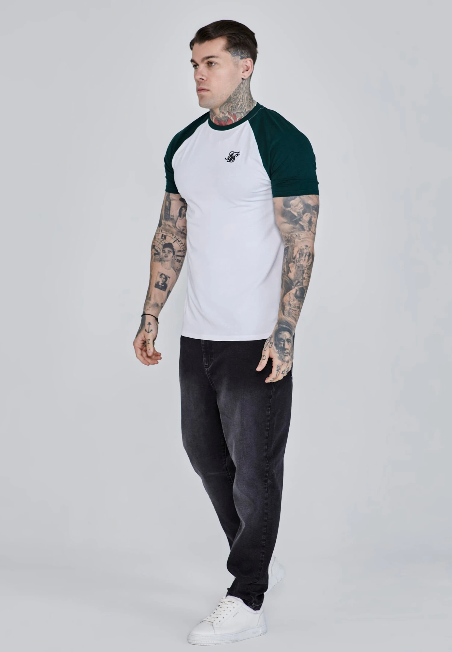 White,Green Raglan T-Shirt